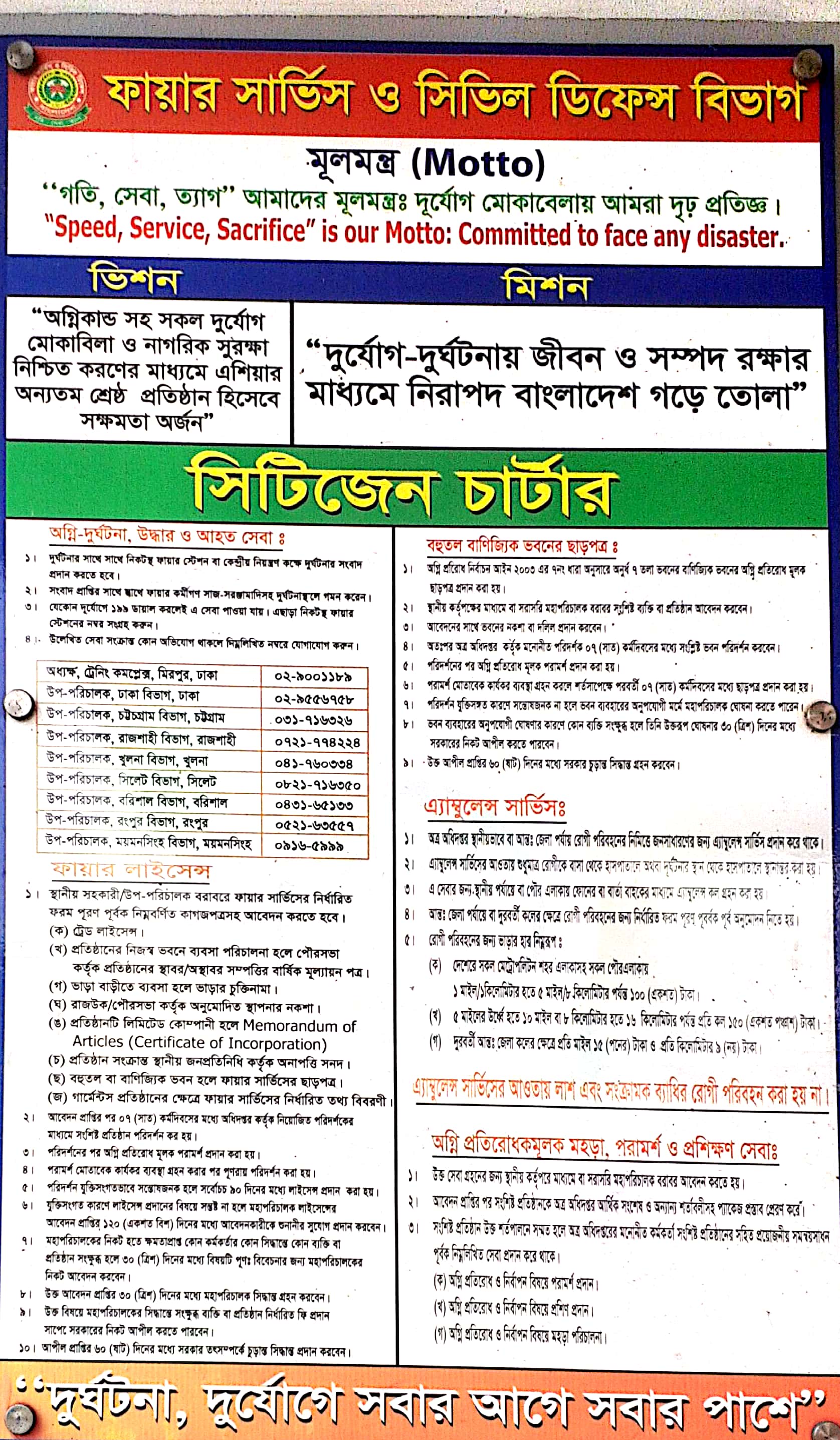 ৩। যেকোন দূর্যোগে ১৯৯ ডায়াল করলেই এ সেবা পাওয়া যায়। এছাড়া নিকটস্থ ফায়ার